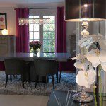 Une attention particulière a été portée pour sélectionner les luminaires, les nombreux tissus (rideaux, chaises, fauteuils) et les tapis