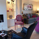 Les fauteuils de style ont été entièrement relookés avec des tissus colorés et contemporain (galuchat noir, velours…)